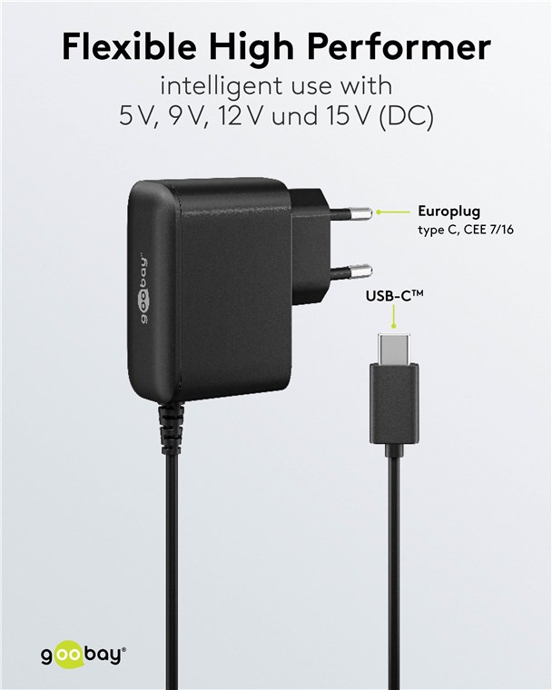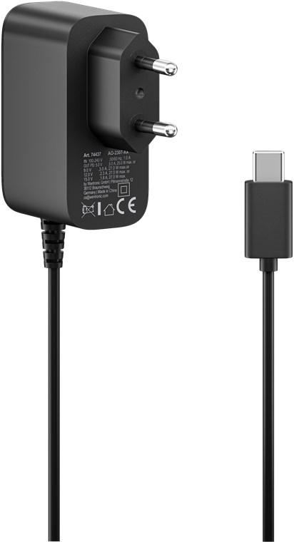 - Mit einem Weitbereichseingang von 100 V bis 240 V (AC) über Eurostecker (Typ C, CEE 7/16) und Ausgang über USB-C™-Kabel (1,25 m)