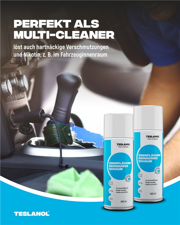 - Der Multi-Schaum reinigt Kunststoffe und Gummiteile schonend und langanhaltend, z. B. im Fahrzeuginnenraum