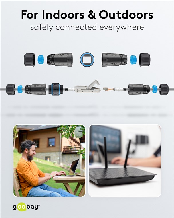 • Feldkonfektionierbarer Kabelverbinder für Außen- und Industrieanwendungen bietet Schutz vor Verschmutzungen und Feuchtigkeit (Schutzklasse IP68).