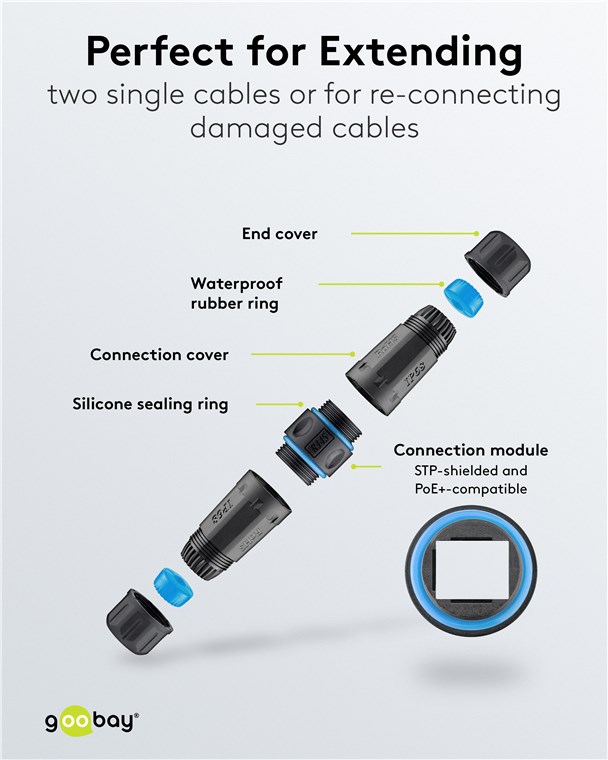 • Mit dem Verbindungsmodul lassen sich beschädigte Kabel neu verbinden, ohne dass ein komplettes Kabelsegment neu verlegt werden muss.