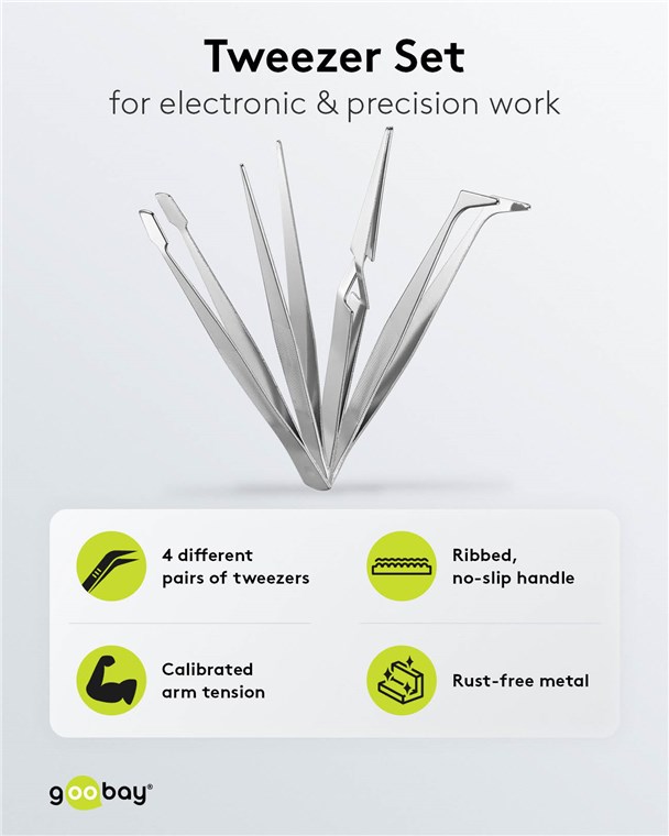 - Werkzeug-Set aus 4 unterschiedlich geformten, handlichen Pinzetten für Präzisionsarbeiten im Modellbau und Schmuckhandwerk, in der Elektronik und Philatelie
