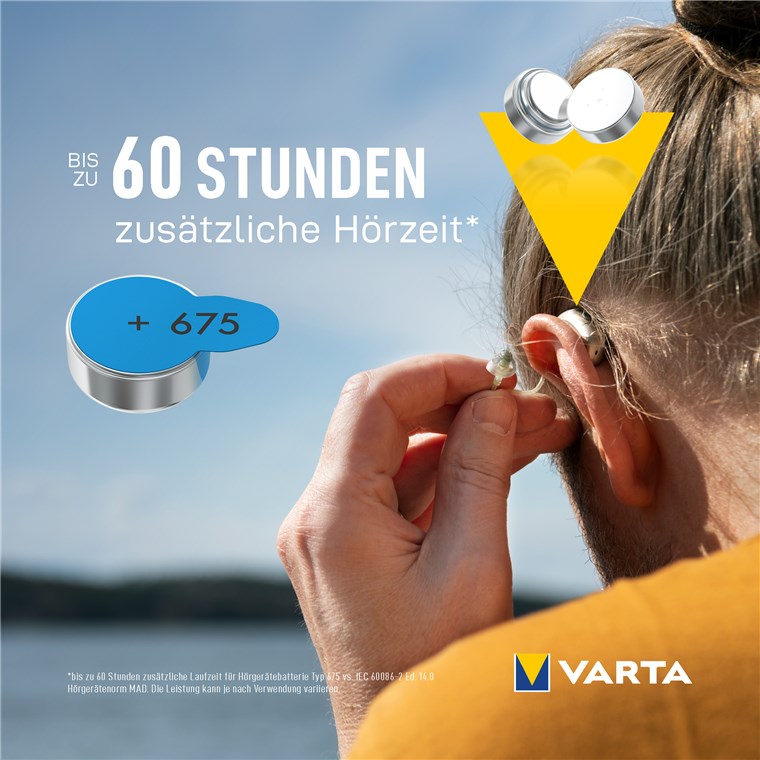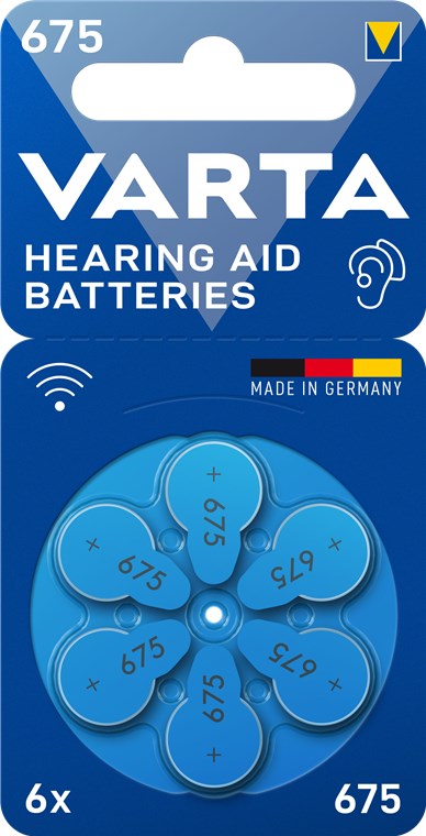 VARTA Hörgerätebatterien Typ 675 mit Zink-Luft-Technologie sind ideal auf moderne Hörgeräte zugeschnitten. Die leistungsstarken Batterien stehen für eine besonders lange Laufzeit und zuverlässige Funktionalität. Für mehr Komfort im Alltag und eine Kommunikation ohne Unterbrechnungen oder Leistungsabfall.