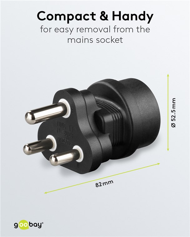 - Durch die griffige Form kann der Adapter einfach und ohne Kraftaufwand aus der Steckdose entfernt werden