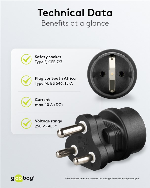 - Ideal als Reiseadapter in vielen Ländern weltweit, z. B. in Lesotho, Eswatini (Swasiland), Namibia, Indien, Sri Lanka und Nepal