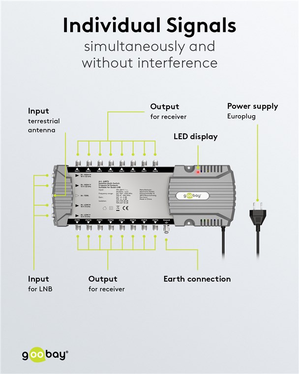 • Ermöglicht allen am Multiswitch angeschlossenen Teilnehmern ein individuelles Empfangssignal - gleichzeitig und störungsfrei