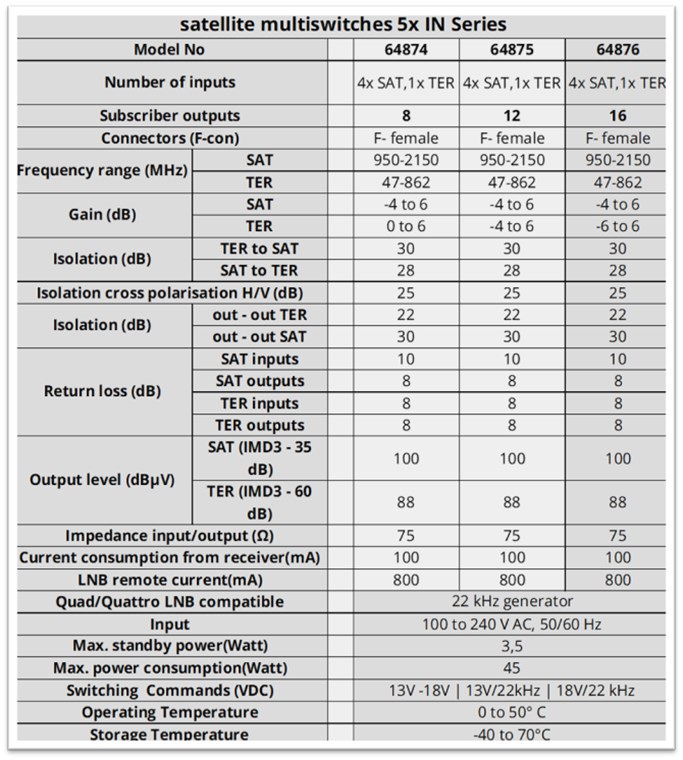 Sat-Multischalter 5 Eingänge/16 Ausgänge