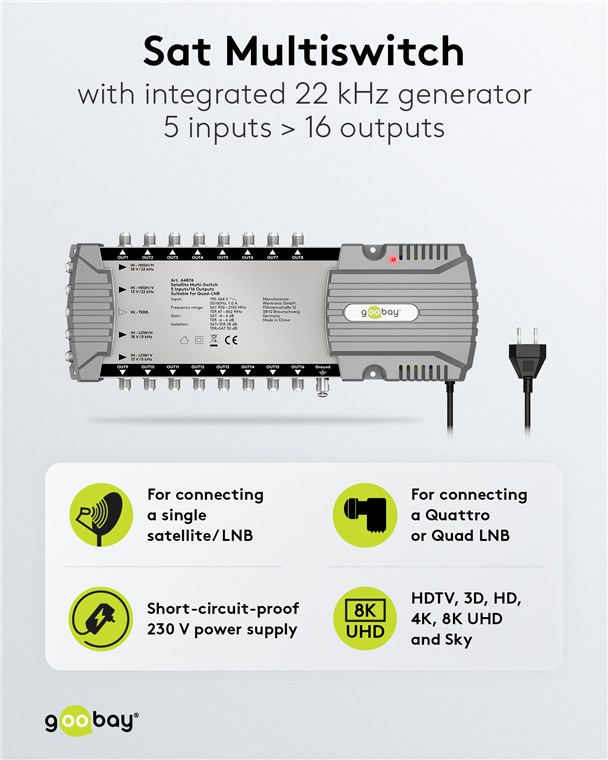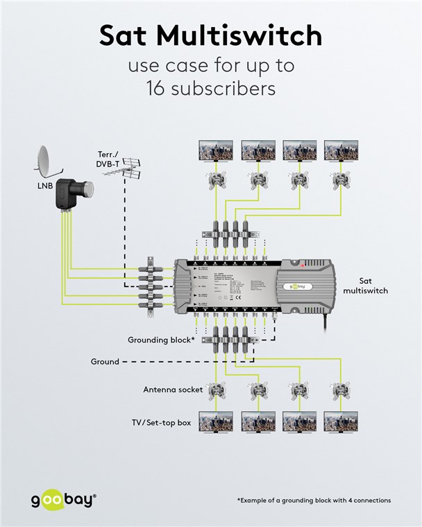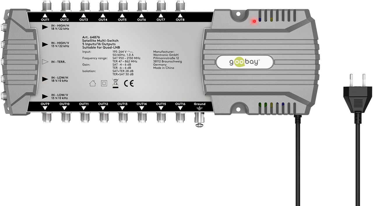 Der Multiswitch ist die komfortable Lösung, um mehrere Geräte für Fernseh- und Radioempfang im gleichen Haus an nur eine Satellitenschüssel anzuschließen. Der Switch sorgt dafür, dass jeder der 16 Teilnehmer ein individuelles Programm genießen kann - für maximale Flexibilität beim Fernsehempfang.
