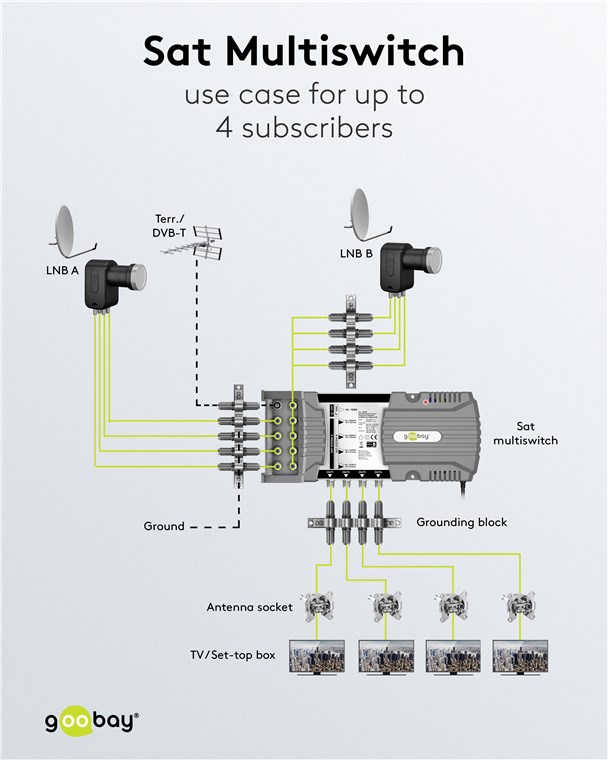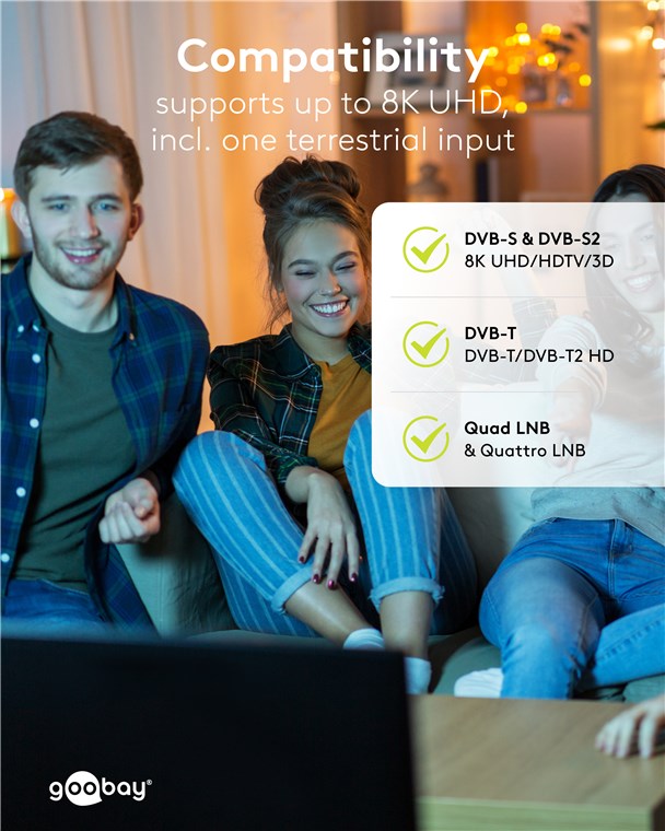 - Ermöglicht allen am Multiswitch angeschlossenen Teilnehmern ein individuelles Empfangssignal - gleichzeitig und störungsfrei