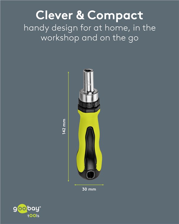 • Durchdachtes Design: Der kurze Schraubendreher mit gummiertem Griff und Ratschenfunktion liegt gut in der Hand und verhindert ein schnelles Ermüden, Öffnung: 1/4 Zoll