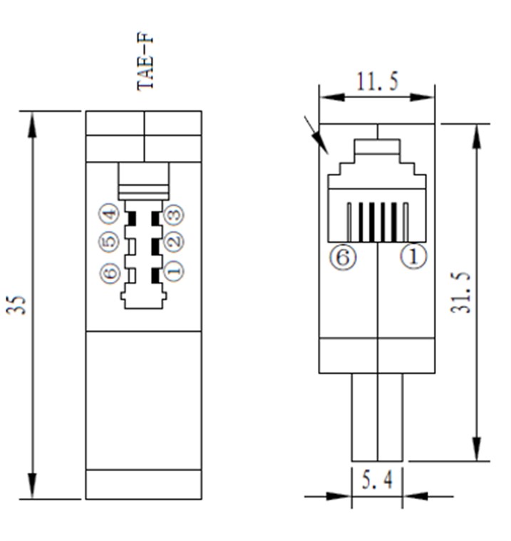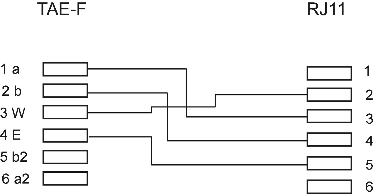 - TAE Telefonadapter ermöglicht die Verbindung zwischen einem Telefonkabel mit RJ11-Stecker und einer Telefondose