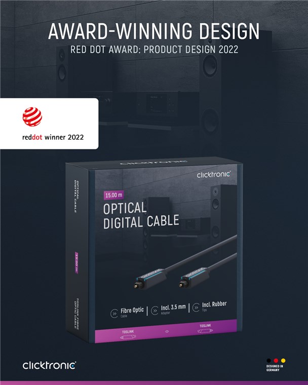 Clicktronic legt größten Wert auf Langlebigkeit und Stabilität. Unser Qualitätsversprechen: 10 Jahre Garantie auf unsere Toslink-Kabel. Die markeneigene Konstruktion unserer Verbindungskabel macht sie äußerst robust. Der dreiteilige Steckeraufbau aus PVC- und ABS-Komponenten kompensiert ein ruckartiges Ziehen am Kabel, wodurch es ideal vor Kabelbrüchen geschützt ist. Hochwertige, vergoldete Kontakte und Polymer-Lichtwellenleiter übertragen digitale und optische Audio-Signale in maximaler Soundqualität für ein perfektes Klang-Erlebnis. Die markeneigene, robuste Konstruktion unserer Audiokabel sorgt somit für dauerhaftes Home-Entertainment.
