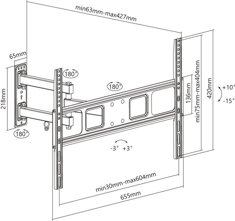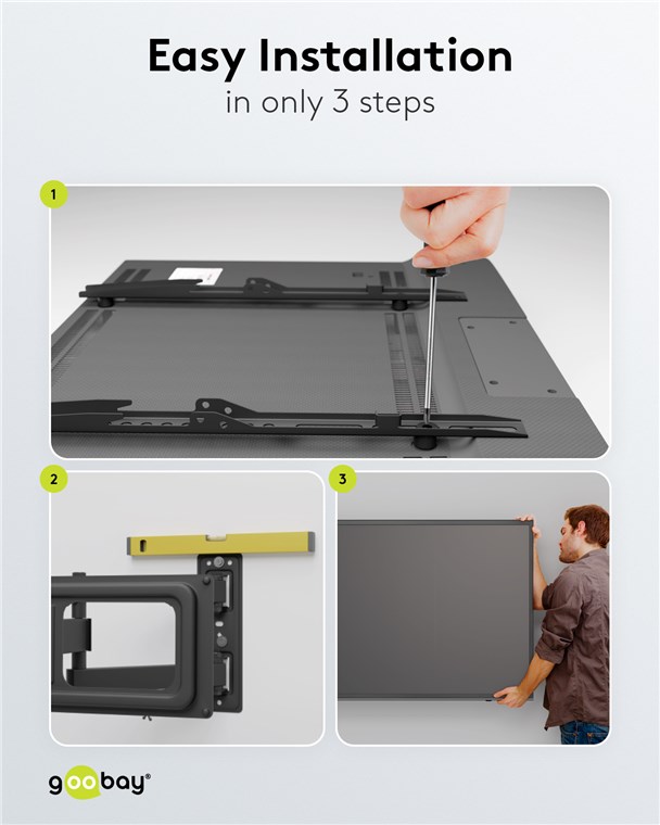 • Immer der perfekte Blickwinkel: Die TV-Wandhalterung hält den Fernseher mit nur 63 mm flach und platzsparend an der Wand und kann bis zu 427 mm ausgefahren werden