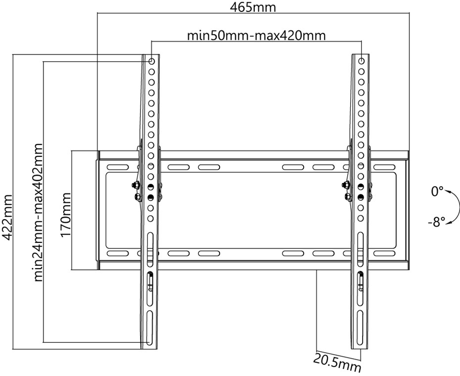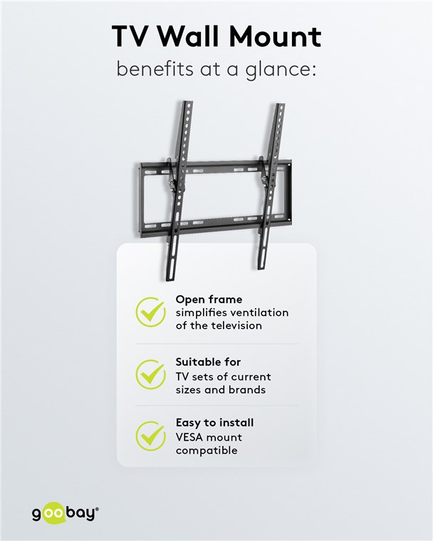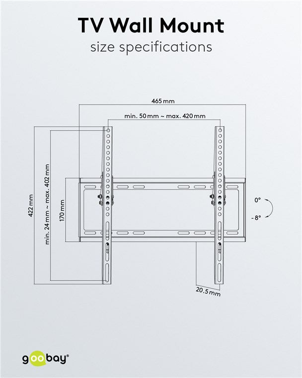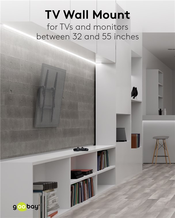 • Extraflache TV-Halterung für eine besonders platzsparende Aufhängung an der Wand mit nur 20,5 mm Wandabstand und bis zu 8° Neigungswinkel