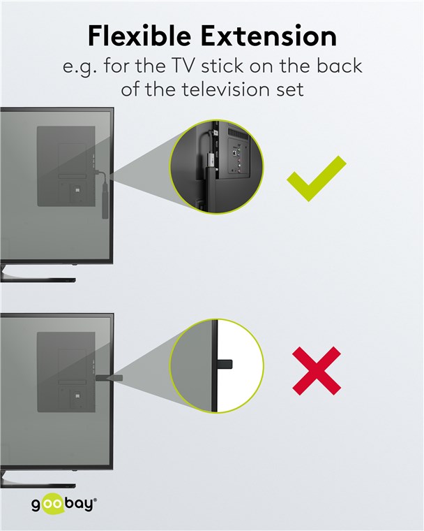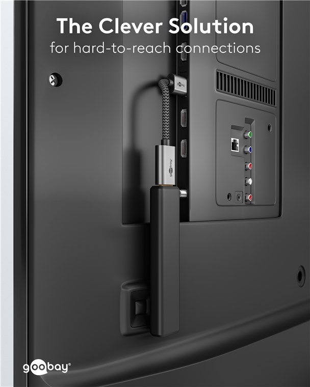 - Flexible und biegsame Kurzverlängerung für schwer zugängliche Anschlüsse z. B. an der TV-Rückseite