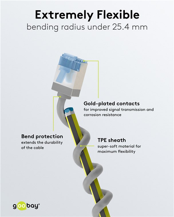 • Durch AWG 32 und einen Außendurchmesser von 3,8 mm ist das Kabel ultraschlank, aber ebenso leistungsstark wie ein Standard-CAT-Kabel