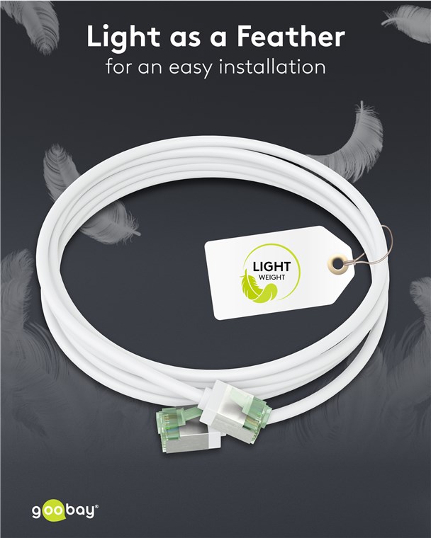Eine CATegorie für sich: Die superslimmen CAT-Kabel mit extrakurzen Steckern reduzieren das Materialvolumen in Serverschränken und Patchpanels drastisch - für eine deutlich verbesserte Luftzirkulation und einen geringeren Wärmestau als bei herkömmlicher Verkabelung. Zusätzlich sorgen der weiche TPE-Mantel und schlanke Kupferleiter für die besondere Flexibilität und Materialeffizienz, die diese Kabelgeneration zum perfekten Netzwerkpartner machen.