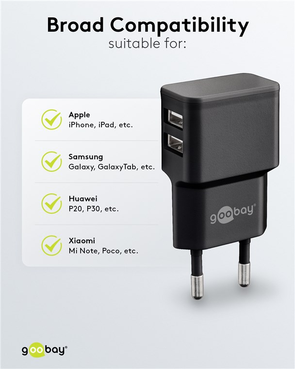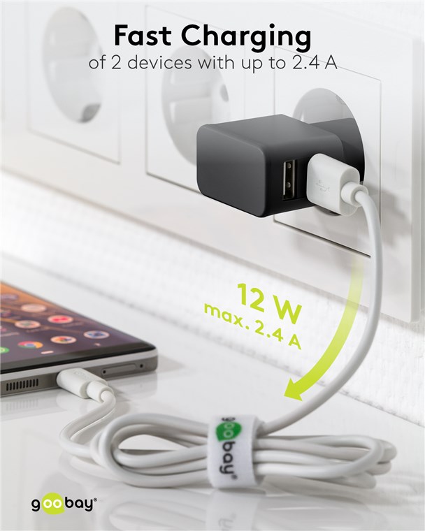 - Mit 12 W Leistung ist der Ladeadapter speziell auf kleine Geräte wie Smartphones, Smartwatches oder Bluetooth-Kopfhörer zugeschnitten