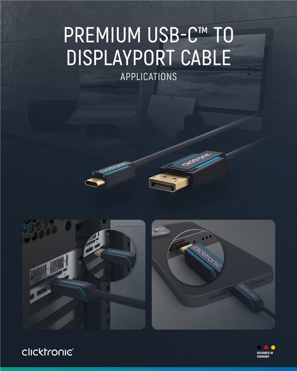 - DisplayPort™-Adapterkabel zum Anschluss an Geräte mit USB-C™-Buchse wie Smartphones und Tablets