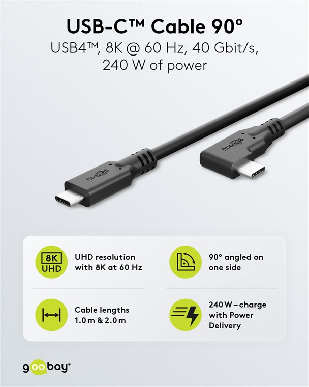 USB-C™-Kabel 90°, USB4™, 2 m, schwarz