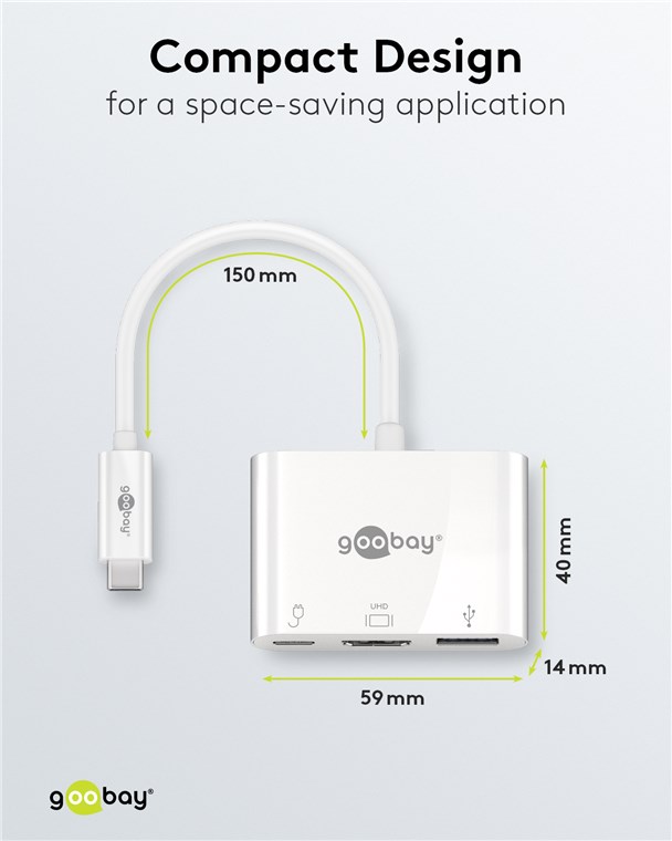 Der Multiport Adapter leitet Signale von USB-C™ auf HDMI™- und USB-Geräte weiter. USB Power Delivery Technologie ermöglicht ein Laden von Endgeräten mit einer Leistung von bis zu 60W. So lassen sich problemlos bspw. große Notebooks, Hubs oder Docking Stationen laden. Zusätzlich mit USB A 3.0 Buchse zum schnellen Datentransfer und Laden mit einer maximalen Übertragungsrate von bis zu 5 Gbit/s. Es werden Auflösungen bis 4K*2k@30Hz unterstützt.