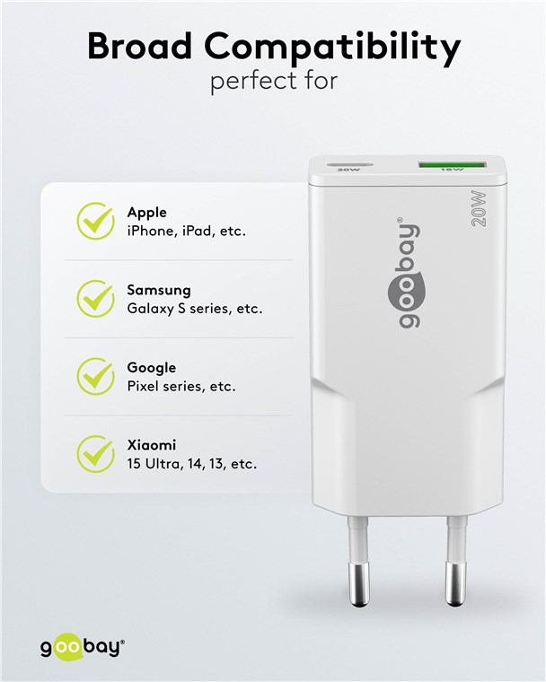 - Mit 20 W Leistung ist der USB-Adapter speziell auf kleine Geräte wie Smartphones, Bluetooth-Kopfhörer, Tablets oder Powerbanks zugeschnitten