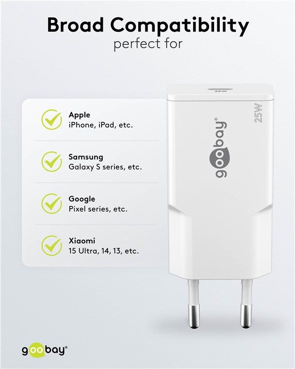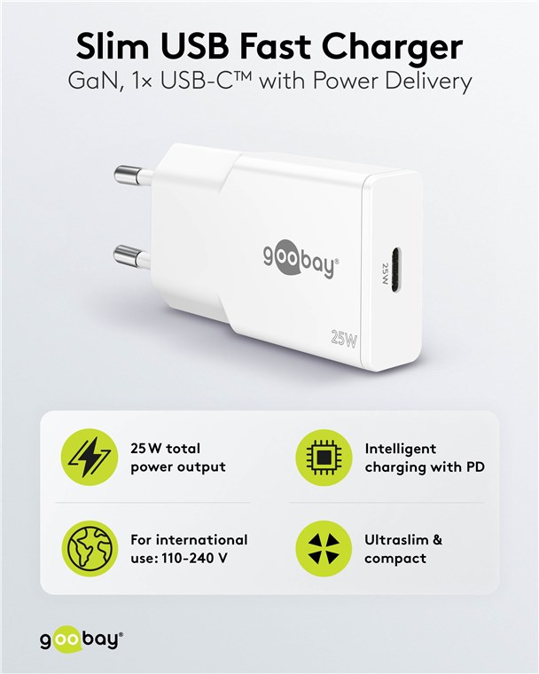 - Mit 25 W Leistung ist der USB-Adapter speziell auf kleine Geräte wie Smartphones, Bluetooth-Kopfhörer, Tablets oder Powerbanks zugeschnitten