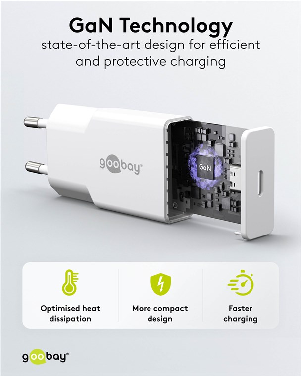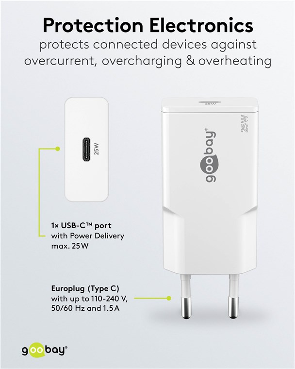 - Die integrierte Schutzelektronik des USB-C™-Ladegeräts sichert angeschlossene Geräte gegen Überstrom, Überladung und Überhitzung