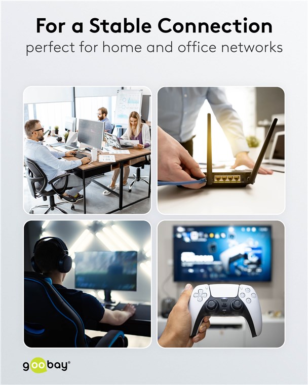 Unser Netzwerk-Zubehör überträgt Signale in maximaler Qualität und Schnelligkeit. Hochwertige Materialien, robuste Gehäuse und passgenaue Kontakte zeichnen unsere Buchsen, Stecker und Kupplungen aus. Goobay hat immer das richtige Produkt für den Aufbau einer stabilen Internetverbindung - sowohl für das Heim- als auch das Firmennetzwerk. Einfach. Alles. Passend!