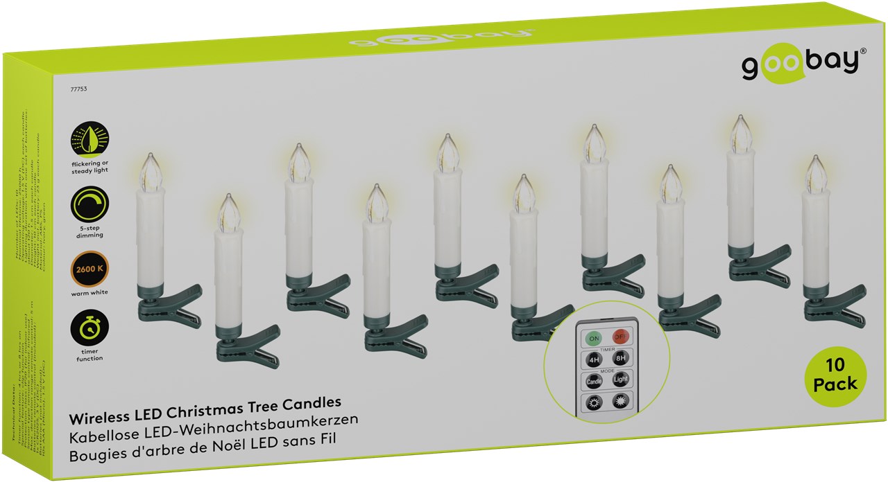 - Precise alignment thanks to the practical green crocodile clips and the ball joint of the Christmas tree candles