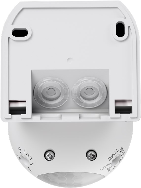 - Light sensitivity (3 lx to 2000 lx) and switch-off delay (10 s to 15 min) can be easily and continuously adjusted using the rotary control on the underside