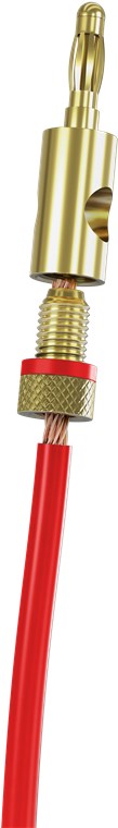 - Equipped with a spring clamp, the banana plug is also suitable for frequent reconnection - in contrast e.g. to hollow Z-type banana plugs