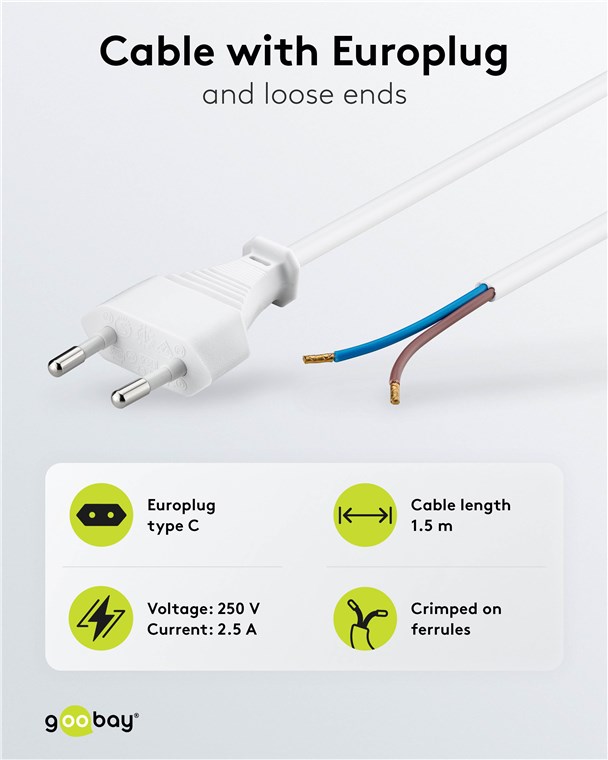 Europlug (Type C CEE 7/16) > Loose cable ends