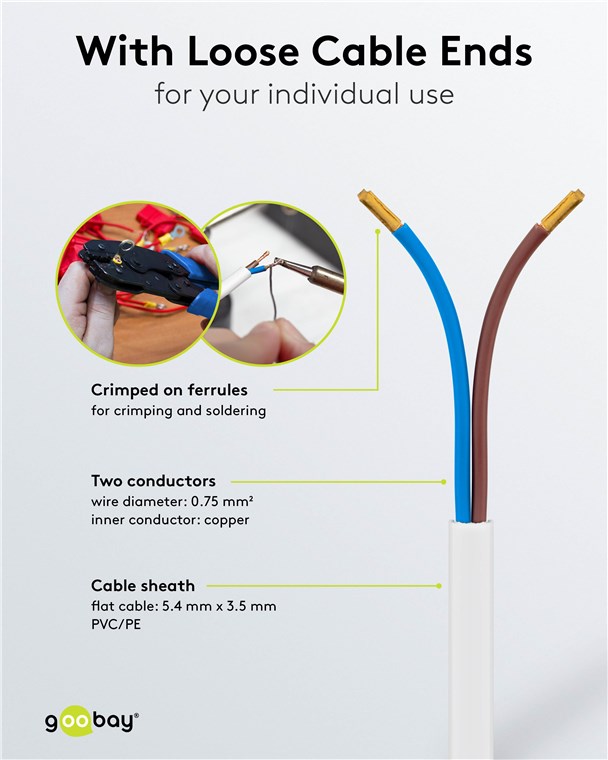 - power cable with open ends and pressed-on wire end ferrules for assembly