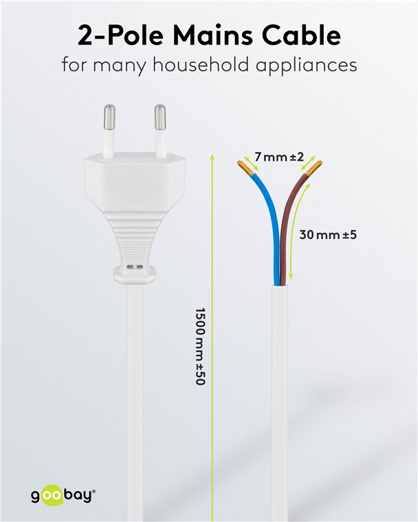 Cable with Euro Plug for Assembly, 1.5 m, White, (2*0.75 mm²)