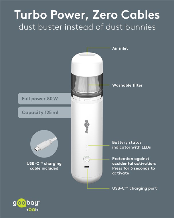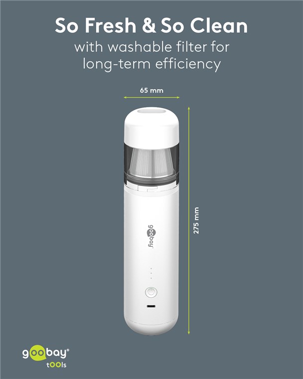 • Handy design: The cordless vacuum cleaner reliably cleans desk accessories such as keyboards or hard-to-reach places, e.g. sofa corners – dust and animal hair don't stand a chance