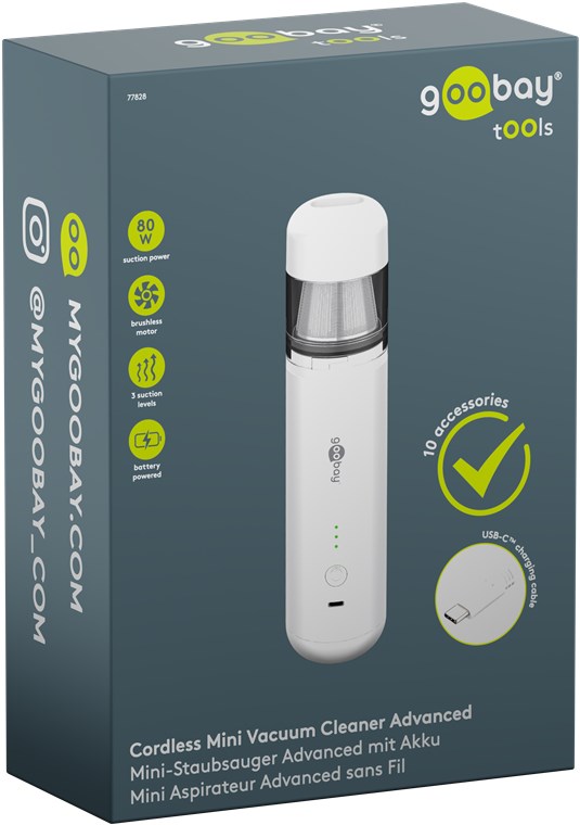 Dust busters instead of dust bunnies: The cordless vacuum cleaner is always on hand to remove dust, crumbs or animal hair. With brush and crevice nozzles, the handheld vacuum cleaner reaches even the smallest corners and removes even stubborn animal hair. In its super-compact format, the small vacuum cleaner is perfect for the office, in the car and around the home.