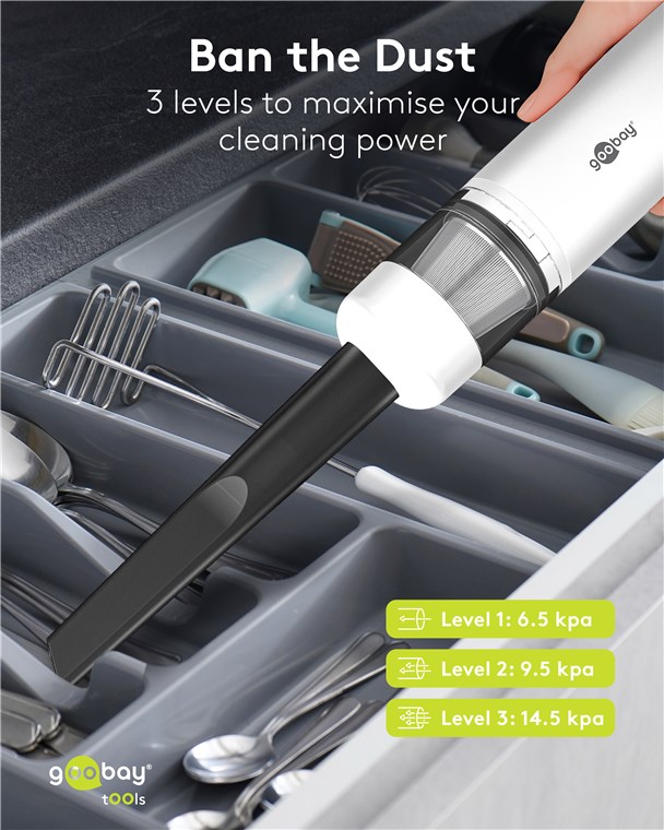 • Handheld vacuum cleaner for all challenges: With 3 power settings, the car vacuum cleaner cleans sensitive surfaces and stubborn dirt and can also be used for vacuum bags