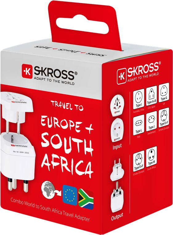 - for connecting devices from more than 150 countries in South Africa and Europe (safety socket)