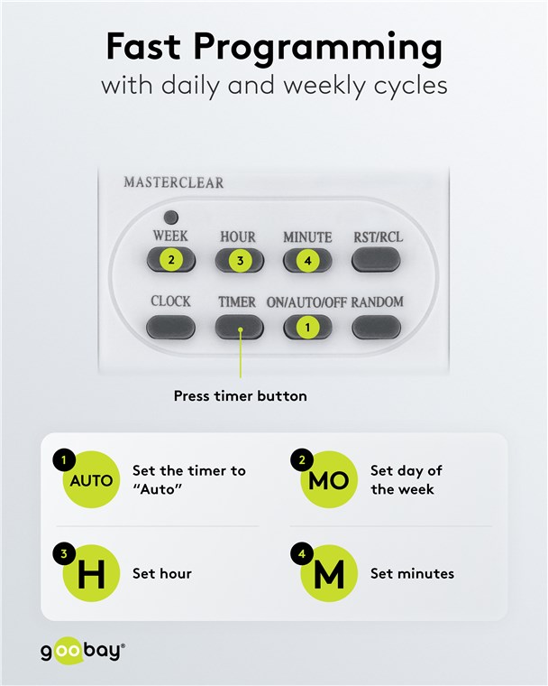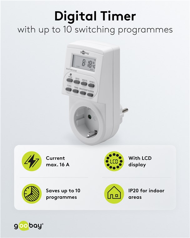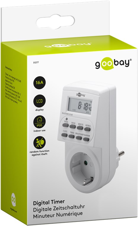 • Digital timer for socket outlet/socket strips for precise control of electronic devices