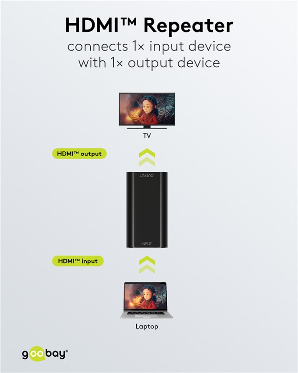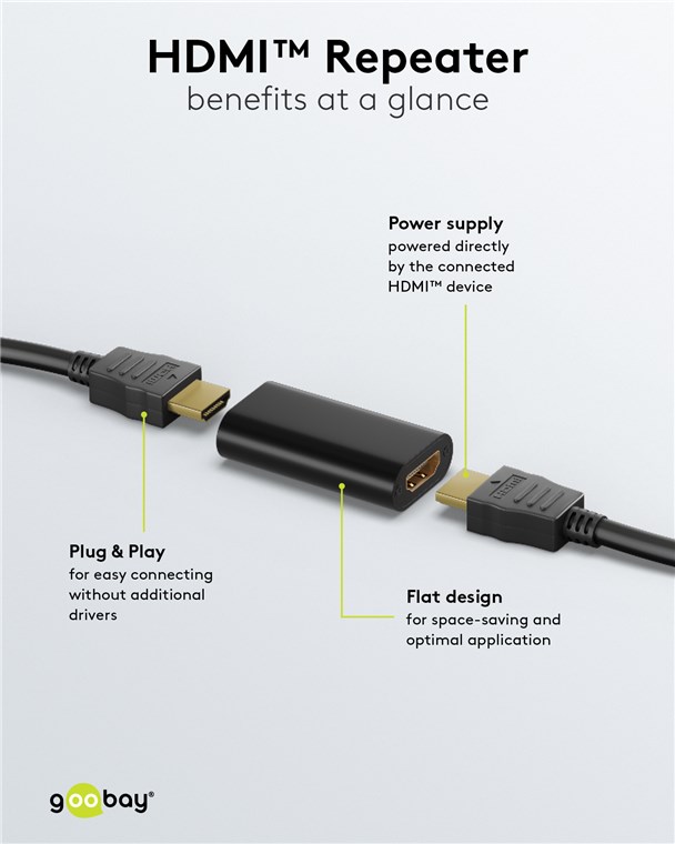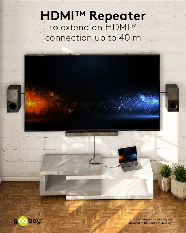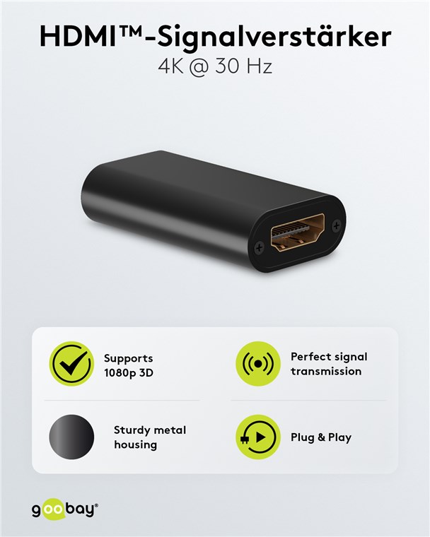 - The HDMI™ repeater boosts the level of weak HDMI™ signals at 4K @ 30 Hz over a distance of up to 30 m and supports 1080p 3D up to 40 m.