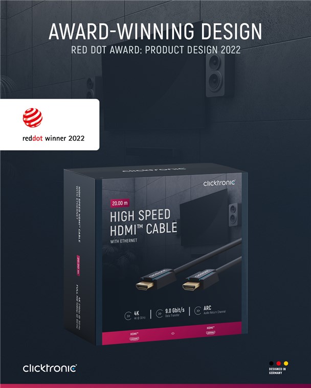 - Clicktronic 4K cable transmits network connection and replaces additional Ethernet cable.