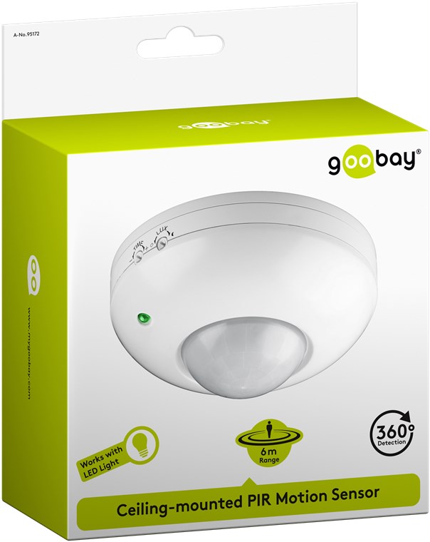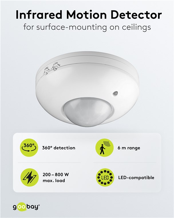 for surface ceiling mounting, 360° detection, 6 m range, for indoor use (IP20), suitable for LEDs
