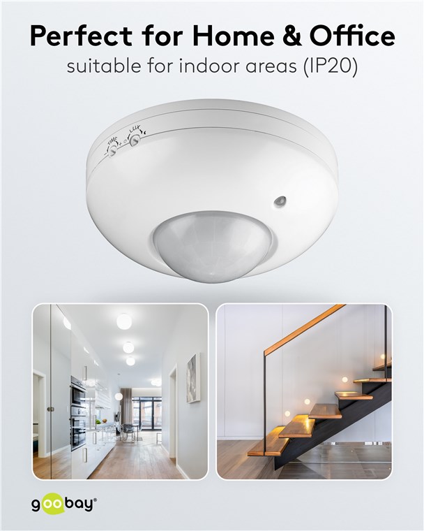 Never left in the dark again: The motion detector from Goobay prevents tripping hazards at dusk and in the dark, giving you a feeling of safety even at night. Perfect for corridors, bathrooms or hallways – the motion detector always reliably activates the connected lighting.