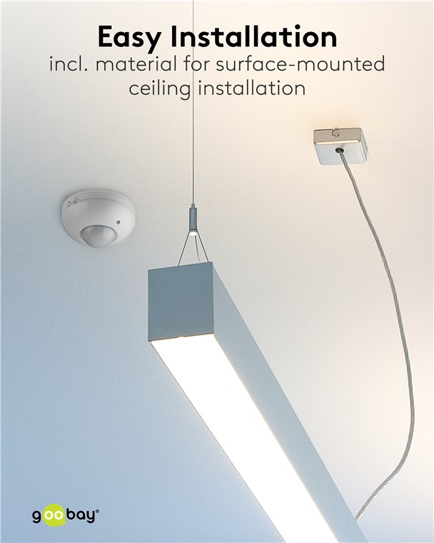 - With a detection angle of 360°, ideal for surface-mounted ceiling installation, installation height: 2.20 m to 4 m