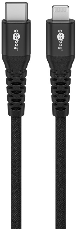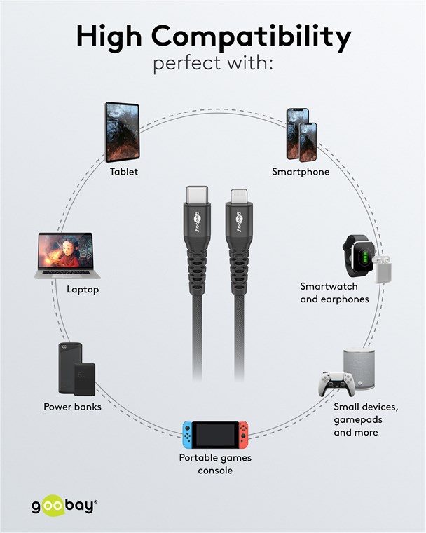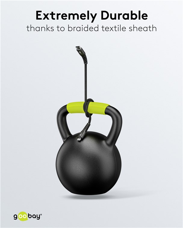 - The braided textile cover of the Goobay USB-C™ charging cable is pleasant to the touch and gentle on sensitive surfaces