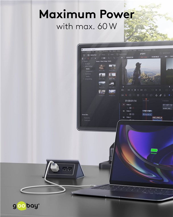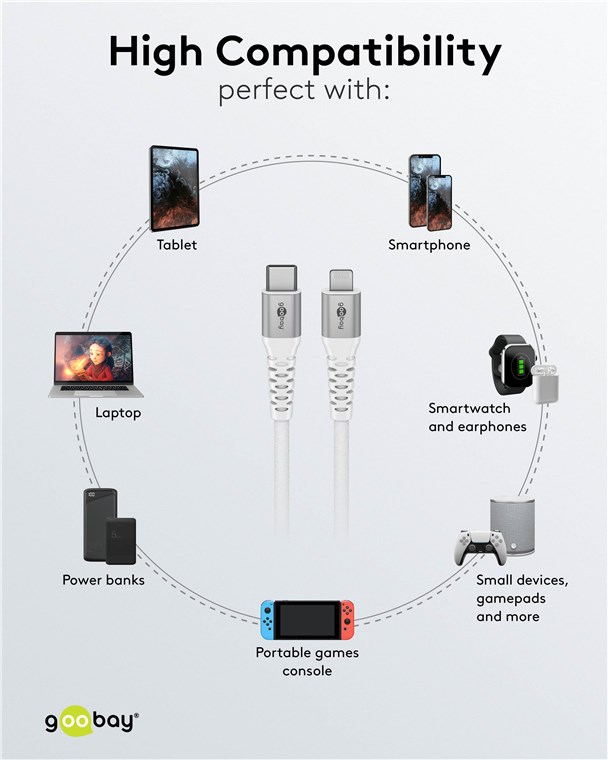 - The braided textile cover of the Goobay USB-C™ charging cable is pleasant to the touch and gentle on sensitive surfaces