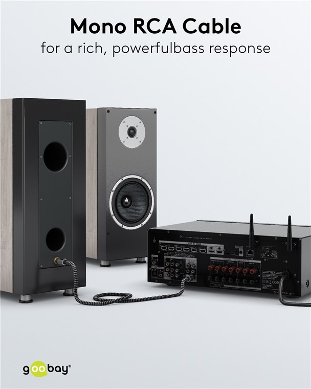 • Mono RCA cable for connecting hi-fi equipment such as a subwoofer to receivers, amplifiers, TVs and home cinema systems with RCA connections