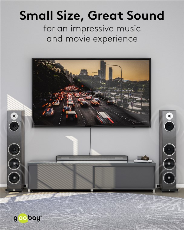 The Goobay Plus series comes in a slim, elegant metal design in Sharkskin Grey. The RCA cable is specially tailored to the analogue low-frequency signals of subwoofers - for a rich, powerful bass response and an impressive music and movie experience.
