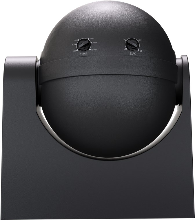 - Light sensitivity (3 lx to 2000 lx) and switch-off delay (10 s to 15 min) can be easily and continuously adjusted using the rotary control on the underside