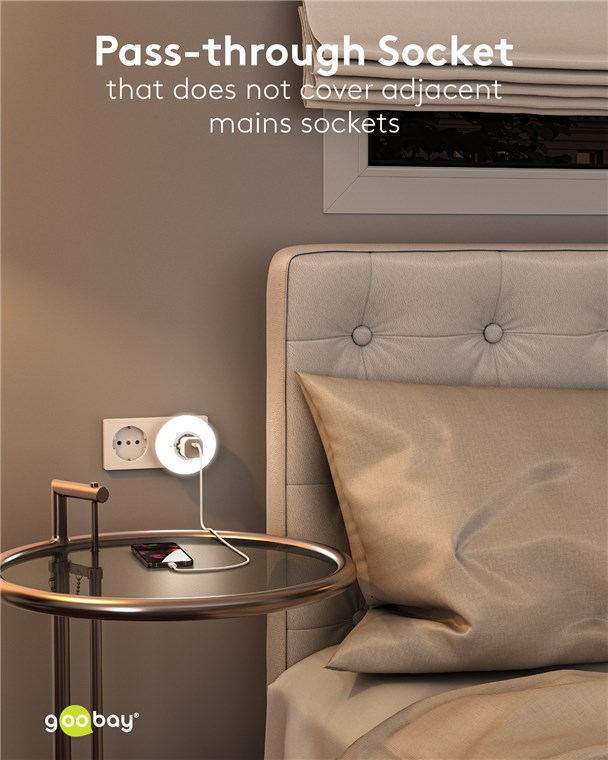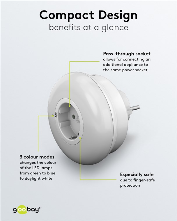 - Thanks to its compact design of 82 x 82 x 72 mm, the nightlight does not cover adjacent sockets.